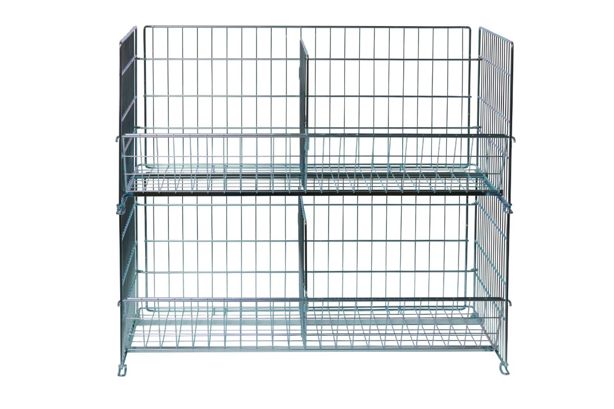 All wire dump baskets can be supplemented with detachable dividers.